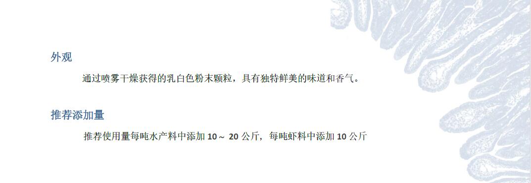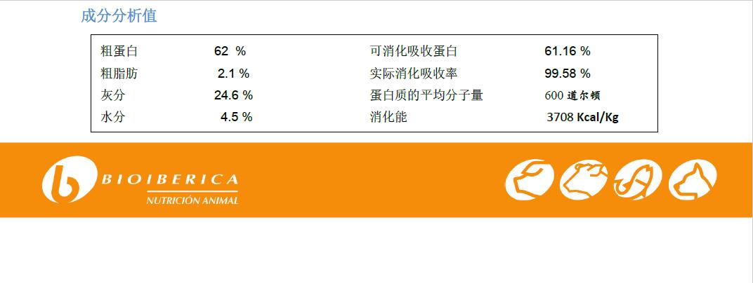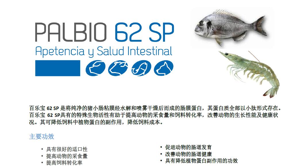 产品特点:百乐宝 62 SP 是将纯净的猪小肠粘膜经水解和喷雾干燥后而成的肠膜蛋白,其蛋白质全部以小肽形式存在。百乐宝 62 SP具有的特殊生物活性有助于提高动物的采食量和饲料转化率,改善动物的生长性能及健康状况。其可降低饲料中植物蛋白的副作用,降低饲料成本。